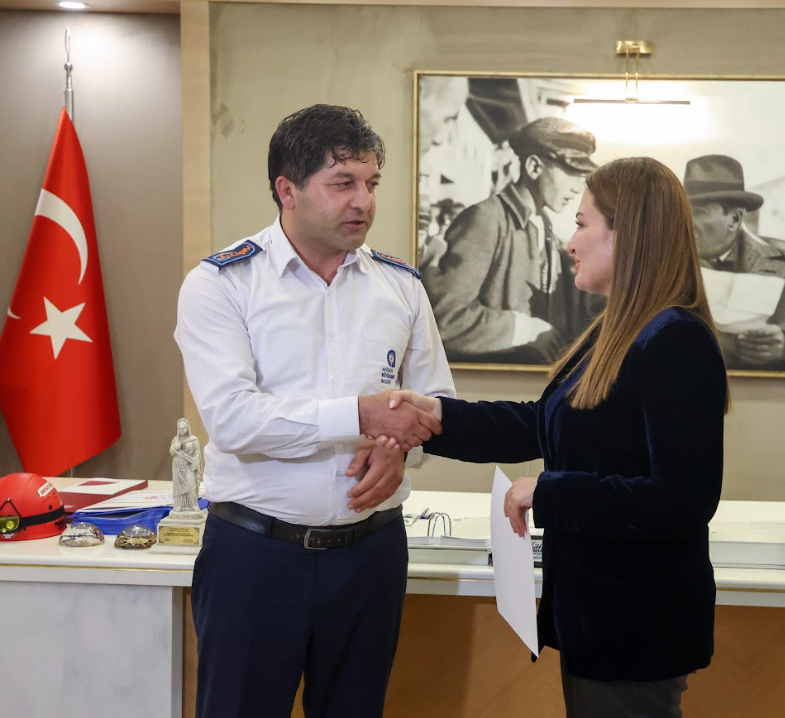 Başkan Vekili Özdemir, gösterdiği örnek davranış nedeniyle şoför Yusuf Yevlal’a teşekkür belgesi takdim ederek kendisini tebrik etti. Özdemir, “Yusuf Bey’e belediyemiz adına çok teşekkür ediyorum. Sadece görev bilinciyle değil, ahlaki bilinçle de hareket ettiğimizin çok büyük bir göstergesi. Tavrı bizleri çok mutlu etti. Bunun aslında bir görev olduğunu biliyoruz. Ama bu sorumluluk, bu ahlaki değeri taşıdığı için de kurumumuz adına kendisine de çok teşekkür ediyorum” dedi.